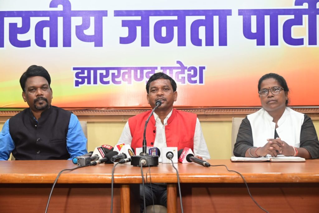 भाजपा अनुसूचित जनजाति मोर्चा के प्रदेश प्रभारी एवम पूर्व विधायक रामकुमार पाहन ने आज प्रदेश कार्यालय में प्रेसवार्ता कर सत्ताधारी झामुमो पर कड़ा प्रहार किया।