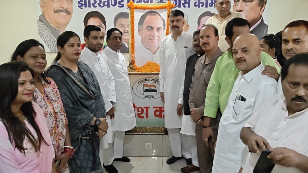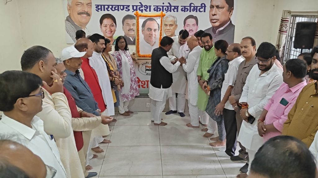 रांची, 20 अगस्त 2023: झारखंड प्रदेश कांग्रेस कमिटी के अध्यक्ष राजेश ठाकुर की अध्यक्षता में आज भारत रत्न भूतपूर्व प्रधानमंत्री राजीव गांधी की 79वीं जयंती प्रदेष कांग्रेस मुख्यालय, कांग्रेस भवन, रांची में मनाई गई। इस अवसर पर कांग्रेसजनों ने राजीव गांधी के चित्र पर माल्यार्पण कर श्रद्धासुमन अर्पित किया। इस अवसर पर कांग्रेस विधायक दल के नेता सह मंत्री आलमगीर आलम, प्रदेश कार्यकारी अध्यक्ष बन्धु तिर्की, पूर्व केन्द्रीय मंत्री सुबोधकांत सहाय, विधायक शिल्पी नेहा तिर्की शामिल हुए।