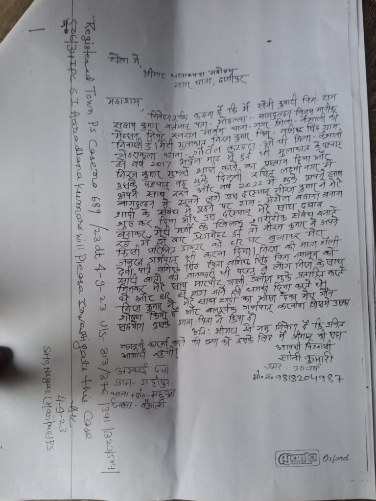 मुझे अचानक मालूम चला की वो हमारे साथ शादी से इंकार कर दिनांक 26/ 09/23को संपूर्ण क्रांति ट्रेन जो दिल्ली जाति है उस ट्रेन से दिल्ली भाग रहा है, हमने तुरंत पटना grp police को सूचित किया जिसके उपरांत पटना grp police ने तत्परता दिखाते हुए खोज बिन कर नीरज कुमार को गिरफ्तार किया।
