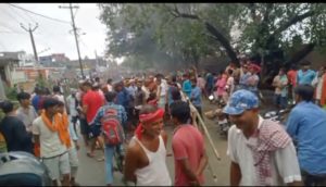 हाजीपुर शहर के वार्ड संख्या 36 के दर्जनों मोहल्ला निवासीयो ने मोहल्ला में बारिश का पानी का जलभराव की निकासी को लेकर आज सुबह से ही हाजीपुर जढुआ मुख्य मार्ग पर बांस,बल्ला से घेरकर, टायर जलाकर जाम कर दिया और मोहल्ला से पानी की निकासी की मांग कर रहे है। सड़क जाम के कारण दर्जनों वाहनों की लंबी कतारें लग गई है। आक्रोशित मोहल्ला वासियों कहना है कि बीते दो माह से मोहल्ला में बारिश का पानी लगा हुआ है । जलजमाव के कारण लोग खाना चौकी पर बना रहा है,बच्चों का स्कूल जाना मुश्किल है,पानी से होकर आना जाना हो रहा है। बीमारी फैल रही है,कितने लोग डेंगू बीमारी से बीमार हो गए है,सांप,बिच्छू से भयभीत है। लोगो का कहना है कि 02 माह से जलजमाव की समस्या से परेशान है लेकिन आज तक समस्या की कोई निदान नही निकल सका है। जाम करने वाले आक्रोशित लोगों का कहना है कि जबतक समस्या की निदान नही हो जाता तबतक जाम रहेगा। मालूम हो कि बीते दिनों शहर में हुई झमाझम बारिश से हर गली,मोहल्ला,सड़क पर भारी जलजमाव है। मोहल्ला के लोग जल कैदी बने हुए है।