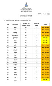 मौसम विभाग ने लगातार तीसरे दिन आज शनिवार को प्रदेश के 6 जिलों में अति भीषण उष्म लहर का पूर्वानुमान जारी करते हुए रेड अलर्ट जारी किया है ,इसके साथ 12 जिलों में भीषण हीट वेव का पूर्वानुमान जारी करते हुए ऑरेंज अलर्ट जारी किया गया है।