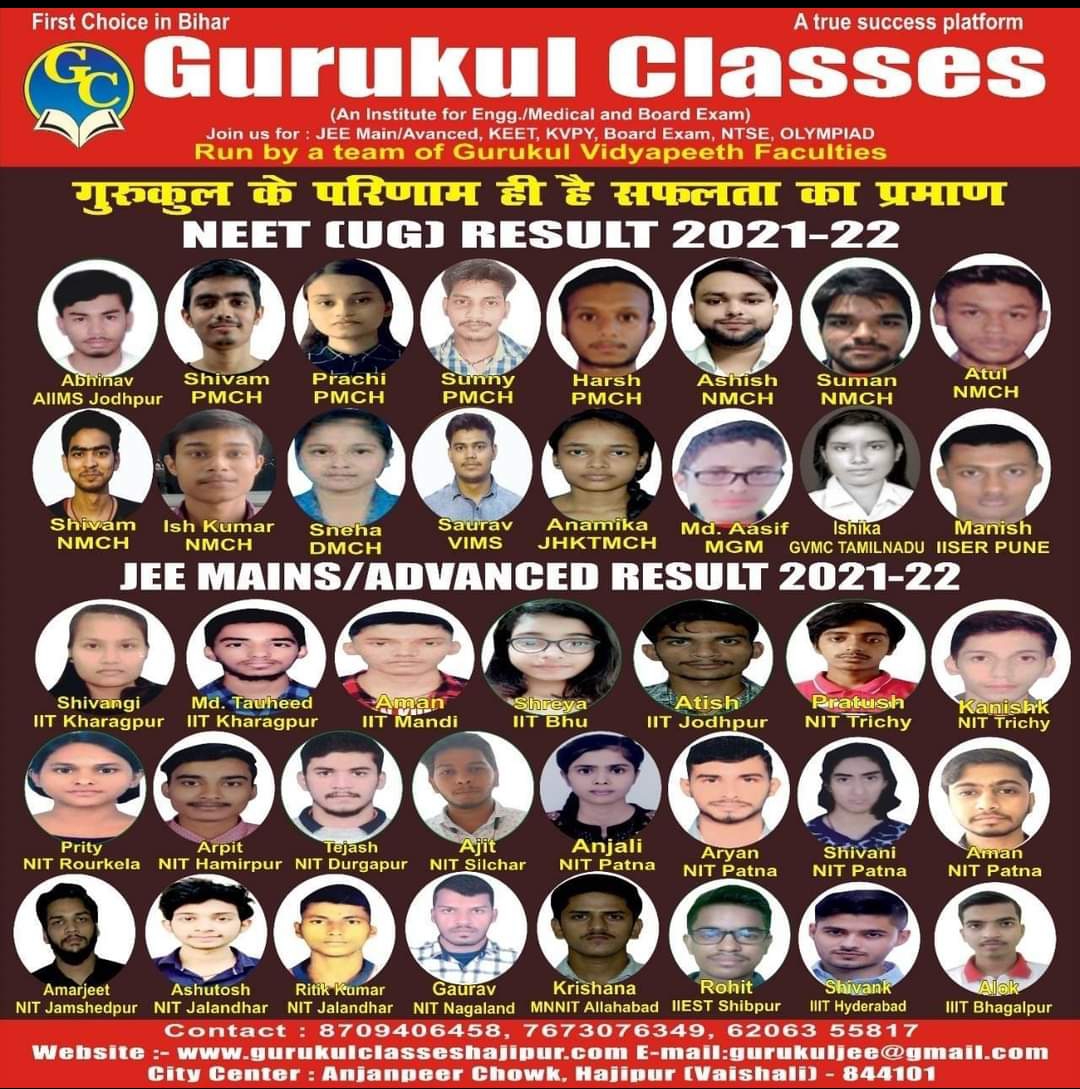 गुरुकुल क्लासेज के छात्र और छात्राओं ने लहराया परचम ! Hajipur – Bihar