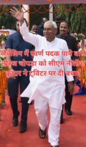 जैवलिन मैं स्वर्ण पदक पाने वाले नीरज चोपड़ा को सीएम नीतीश कुमार ने ट्विटर पर दी बधाई