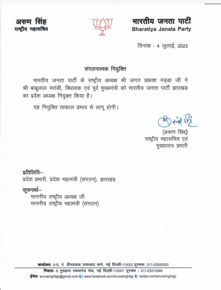 Breaking news – Ranchi- झारखंड के पहले सीएम और पूर्व केंद्रीय मंत्री बाबूलाल मरांडी (Babulal Marandi) को बीजेपी ने अहम जिम्मेदारी दी है. उन्हें झारखंड