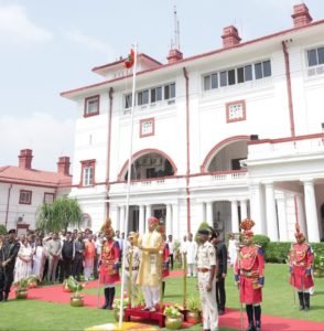 राज्यपाल राजेन्द्र विश्वनाथ आर्लेकर ने 77वें स्वतंत्रता दिवस के अवसर पर राजभवन में झंडोत्तेालन किया