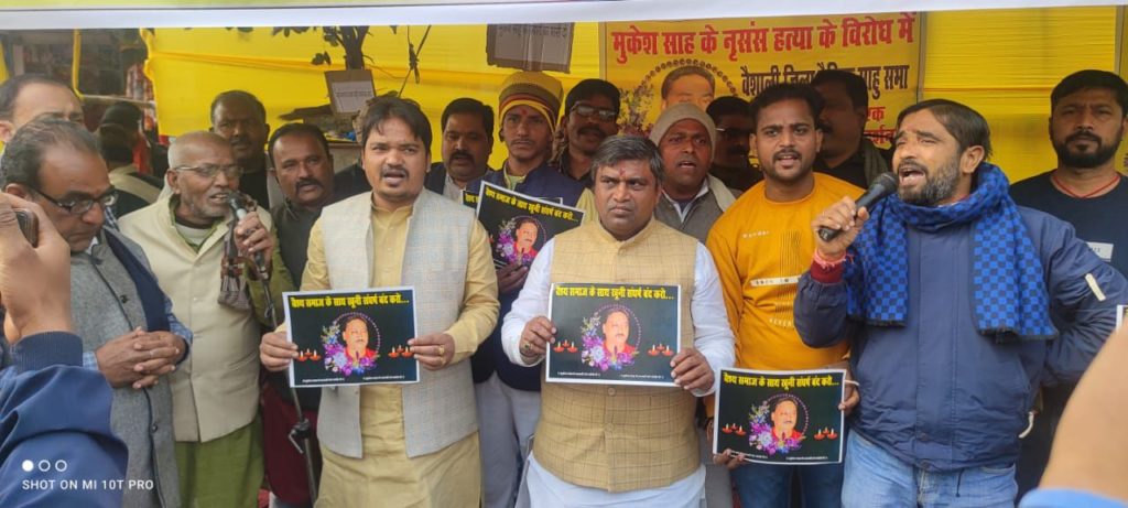 मुकेश साह हत्याकांड में पुलिस प्रशासन के शिथिल रवैया के विरोध में आज धरना प्रदर्शन किया गया।