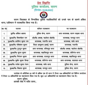 15 अगस्त कुछ पुलिसकर्मियों के लिए थानेदारी की सौगात लेकर आई तो लापरवाह पुलिस कर्मियों की थानेदारी छिन गई. सारण एसपी डॉ गौरव मंगला ने