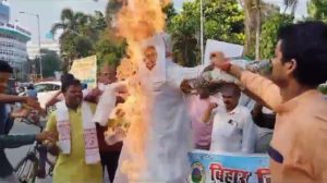 निषाद समाज ने बिहार के मुख्यमंत्री नीतीश कुमार के खिलाफ प्रदर्शन किया और पुतला जलाया