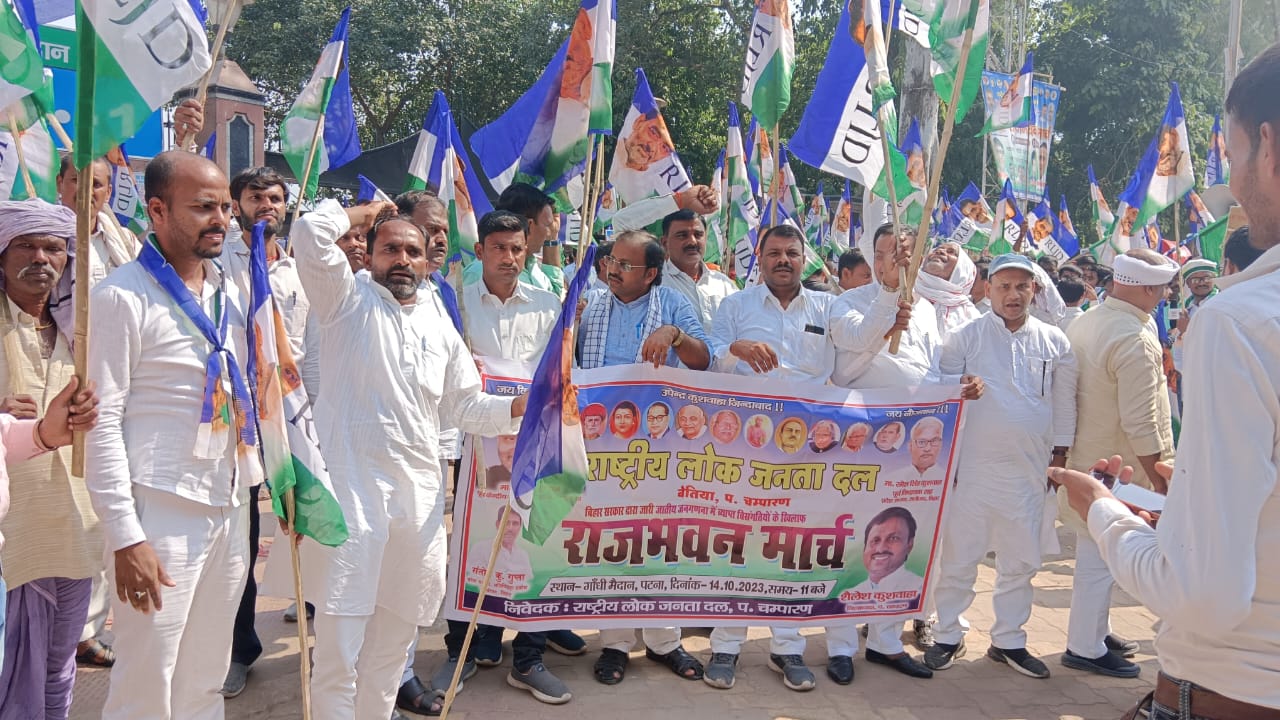 राष्ट्रीय लोक जनता दल का बिहार के द्वारा जारी जातीय जनगणना में व्याप्त विसंगतियों के खिलाफ राज भवन मार्च