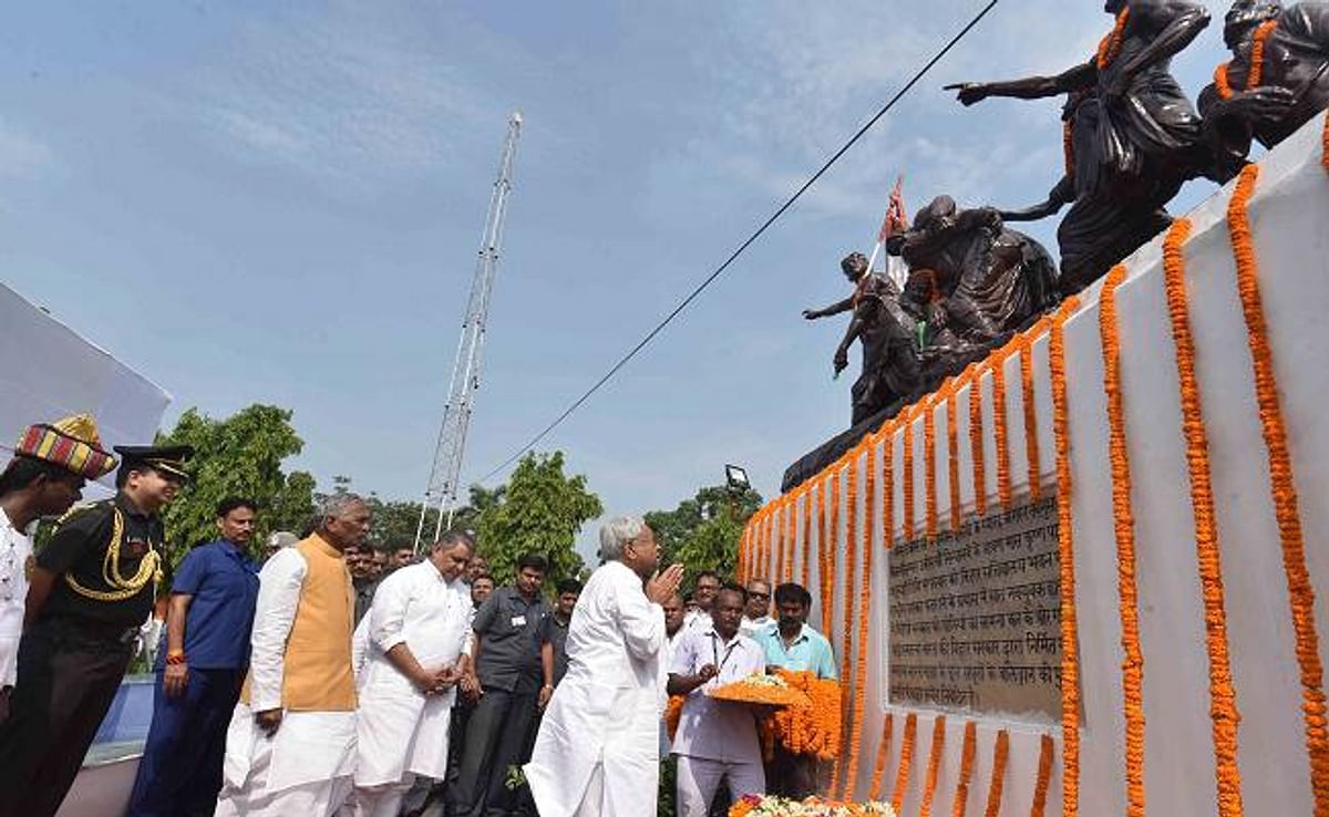 शहीद स्मारक पर आयोजित है राजकीय समारोह.CMनीतीश DY.CMतेजस्वी यादव समारोह में शामिल.स्पीकर अवध बिहारी चौधरी समेत अन्य नेता भी मौजूद. सीएम नीतीश कुमार का पीएम
